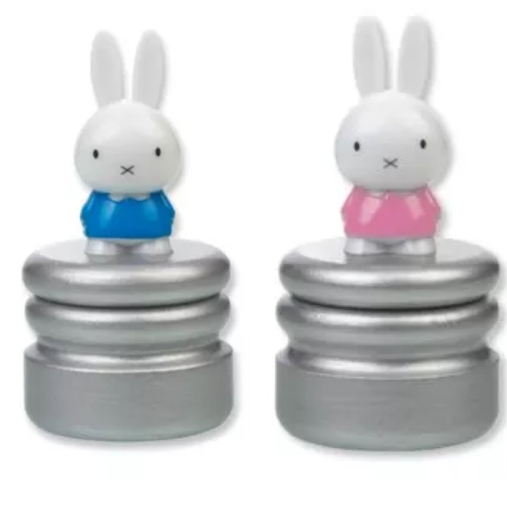 Er is keuze uit een blauw Nijntje en een roze Nijntje.