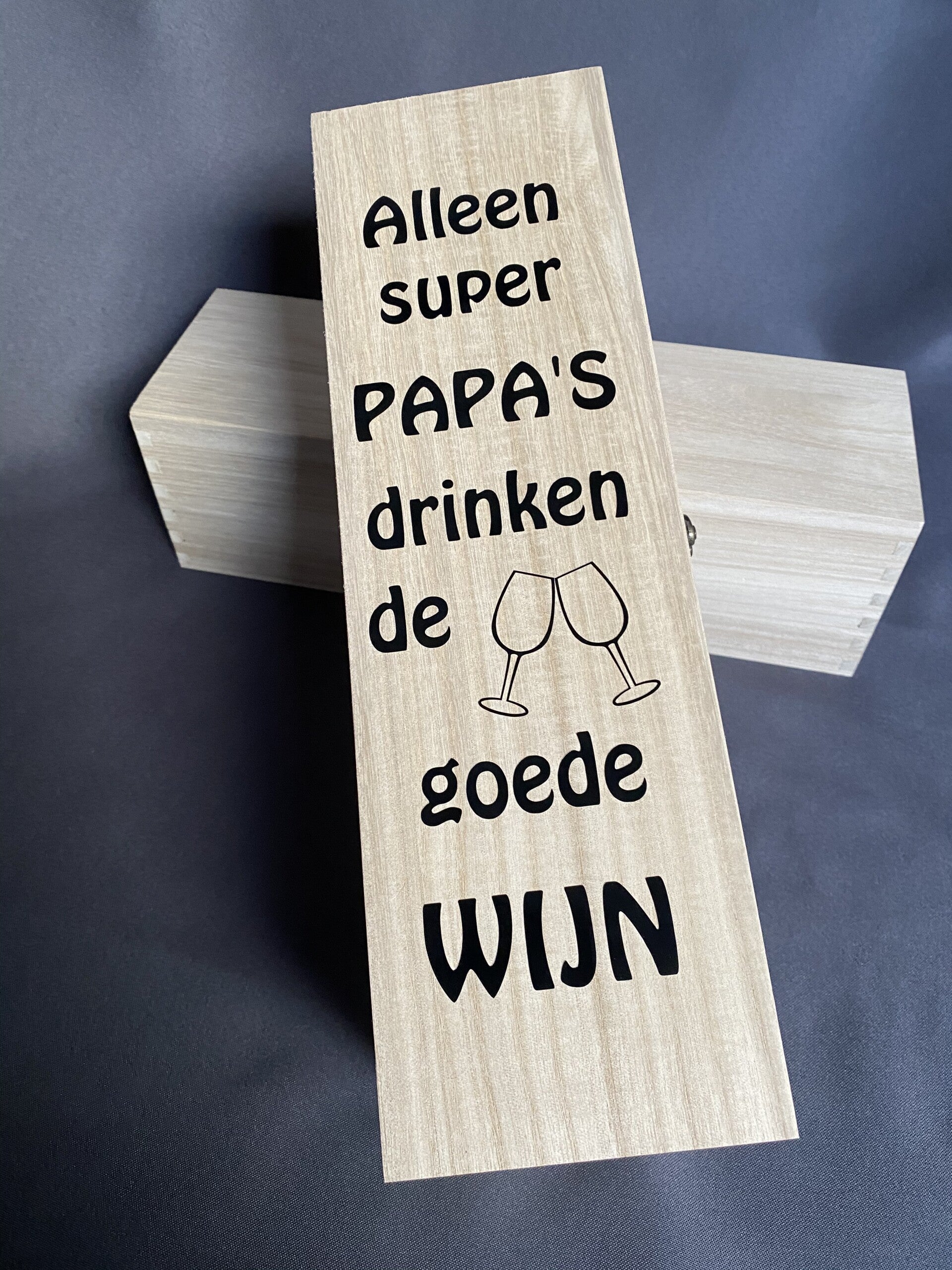 Wil jij een wijnkist laten bedrukken met een eigen tekst. Dat is geen probleem. De kosten van een bedrukte kist zijn €9,95 laat in de opmerking weten wat je op de kist bedrukt wilt hebben en welke kleur tekst je had gewild.