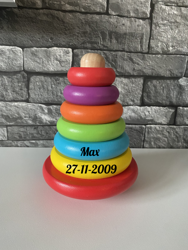 Een stevige houten piramide welk ik kan voorzien van naam en geboortedatum.